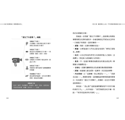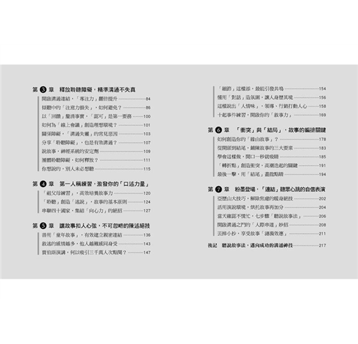 賈伯斯在說故事時,沒有談論感受,只說遭遇;他放入「五感感知」,啟動聽眾想像力。「Narativ聽說故事法」,便要傳授能讓故事如此萬眾矚目的「創造三心法」;並以獨創的「祖父母練習」,激發你的「口述力量」,要你一開口就扣人心弦、最具說服力。