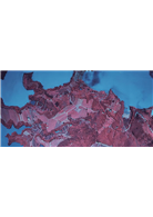 但航拍再加上紅外光攝影,又把如此宏偉的景緻再往上翻了一層。紅外光拍攝出來的畫面,把顏色調轉、顛倒、變化或極致化之後,成了一張你熟悉又不熟悉的圖,你知道那好像是稻田、是海、是山林、是房舍,但又好像不是。因為它像是被孩子塗抹了錯誤的顏色,所以有一種差異的美感,可又是極具創意和有規有矩的上色方式,把色彩都弄成了大師之作,有大師的眼光和精準。當然啦,因為這原本就是上帝的畫作,我們不過小小的攪弄了一下色彩而已。所以那張既熟悉又不熟悉的圖,就吸引著我的目光,很想要瞧出一個所以然來。但當然以我這外行人,是絕對談不出那些科學性的判釋或解說,那需要經過訓練,才能挖掘出這美麗圖像下隱藏的大量資訊。而我只能先當個觀賞者,瞧瞧這異樣而豐美的斑斕色塊並沉醉其間。