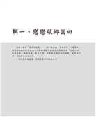 全書共分七輯:第一輯「戀戀故鄉園田」,第二輯「生命強者」,第三輯「面對新一代」,第四輯「愛屋及烏」,第五輯「別開生面」,第六輯「田園四季」,第七輯「親情招喚」。顧名思義,皆有不同凡響的主題內容。