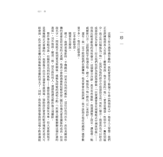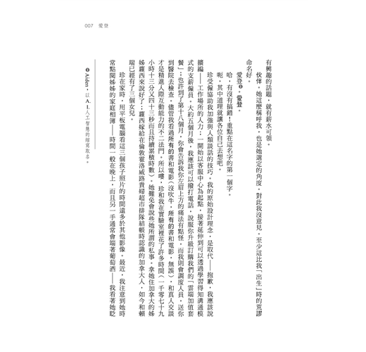 這真是最奇特的愛情小說,把形而上的愛與命運交由嚴密檢驗、管控的人工智慧來思考。從人類與人工智慧的不同觀點來對照,讀者不斷接收到充滿反差的趣味。──《浪漫時代書評》