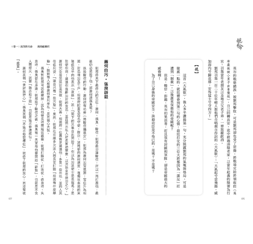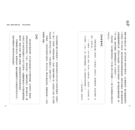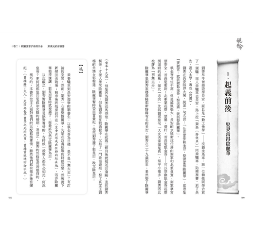 ★本書在歷史論述中,除保留了引用經典史書的「原典精華」,另增加「贊」和「覘」兩個單元。「贊」是評論,近似史書作者的曰、言;「覘」是覘探當事人在當下的心境,和他做成決定、採取作為的思考因素。讀史,每回都有不同觸發與智慧收穫,好玩就在這裡!