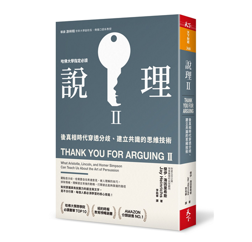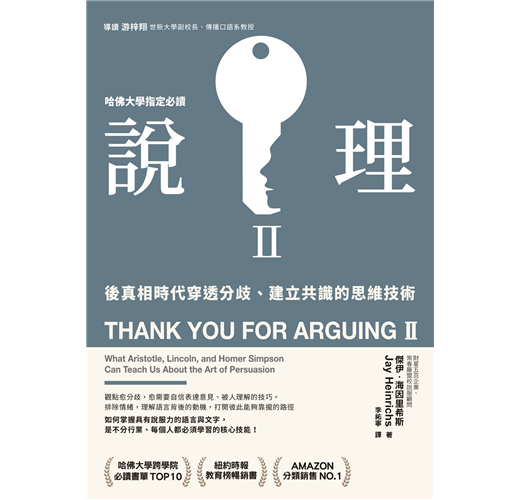 「這是一場修辭盛宴,賓客雲集,請來了西塞羅、小甜甜布蘭妮、聖奧古斯丁和維多利亞女王。從MTV到亞里斯多德,海因里希斯帶給讀者滿滿的趣味、啟發,甚至還有一點點希臘文。他告訴我們在重要時刻和日常工作、戀愛與生活戰鬥中,都是可以智取的。如果說論述是思維的搖籃,那麼《說理》將讓我們成為一個更棒的思想家。千萬別錯過!」──《Power Talk》作者 莎拉.麥金蒂(Sarah McGinty)