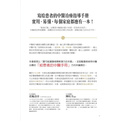 由日本東洋醫界中心人物花輪寿彦教授監修、台灣中醫界巨擘陳旺全醫師審訂