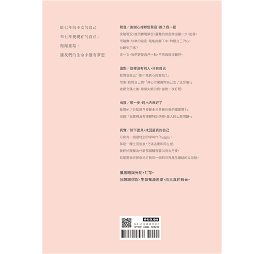 「妳可以一個人去丹麥,寫一本書,把妳的經歷分享出去。」那是個年輕女生的聲音。