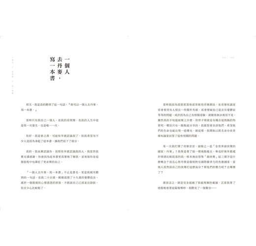 「一個人去丹麥,寫一本書」不止是書名,更是我親耳聽到的一句話。在我二十出頭,剛剛經歷了十九歲的憂鬱低谷,處於一個脆弱但心懷感恩的狀態。不敢說自己已經走出陰影,但至少心比較鬆了。