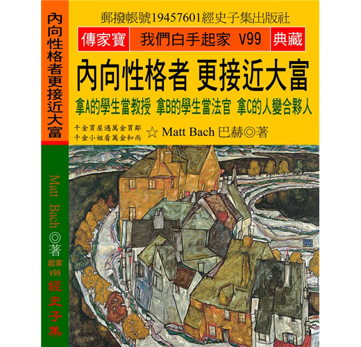 我們追求的是具體的目標,不是遙遠空虛的願望。我們的字比較大,文筆比較好,內容比較充實,故事比較精彩;光看文筆,就值得收藏;本書創作的目的,在與眾不同,目標是心靈百萬富翁(Millionaire):擺脫貧窮,邁向富有!最在意的是深層的探討,就像英國詩人波普說~: