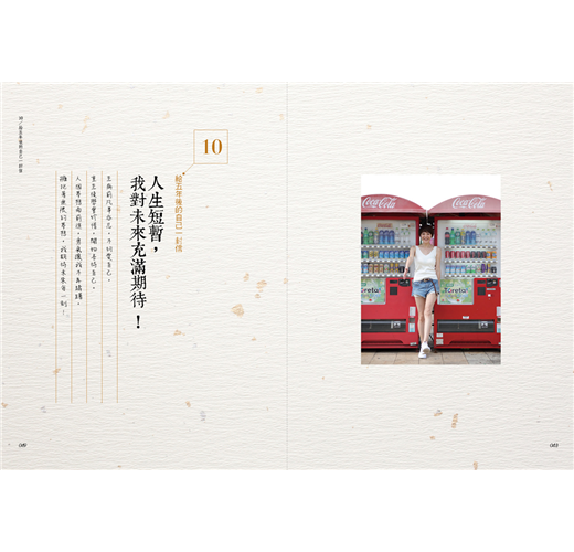 人生難題就像一面鏡子,能夠從解決問題的方式和態度,完全反射出自己最脆弱卻也最真實的樣貌,讓我發現原來自己可以那麼勇敢、那麼樂觀。為了不忘記這種感覺,我也寫了信給自己,期許自己將來在遇到種種難關時,都可以發揮曾經擁有的「鋼鐵精神」,用周遭大家給我的滿滿正能量來一一解決,並且帶著微笑,不停止地大步向前走,擁抱每一個不可預期、但卻同樣精采的未來!