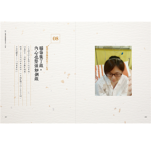 面對晴天霹靂的病友們又該如何拿出鋼鐵勇氣來迎戰?經歷過漫長的治療過程,黑暗心靈的抗衡,或許有人不知所措,有人沒能挺過,我明白這一切的艱難與心酸,光憑著一個人的力量是很難戰勝病魔的。雖然自始至終只有自己的意志力才是致勝關鍵,但如果多了家人朋友的陪伴和撐腰相挺,或是有著「學姊」的經驗分享可參考,絕對比一個人單打獨鬥來得有效率。