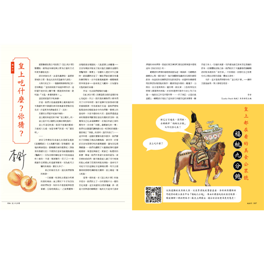 由知名作家、美食雜誌《Lucky Peach福桃》主編李舒主編的《皇上吃什麼》,書末附有溥傑妻子愛新覺羅‧浩記錄下來的三十道皇家菜譜,大飽眼福之餘,大可動手照做,享一回皇上才有的口福。