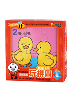 ●數字認知:1間房子、2隻小鴨、3顆蘋果、4朵花、5隻小狗、6隻小鴨,透過數拼圖上東西的數量,學會數數及認識數字。