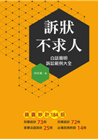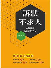 本書完全打破這個魔咒,不僅將各式各樣的訟狀(狀紙)範例統統收入,還用最淺顯易懂的白話文和近乎口語的詞彙書寫出來,相信就算是任何法律條文都不懂的一般人,也都看得懂、看得明白。