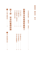 「第一部 耳朵的基礎訓練」主要收錄周遭的「環境音」,藉此練習感受聲音的大小、明亮、長度等等,可提昇分析力和專注力。