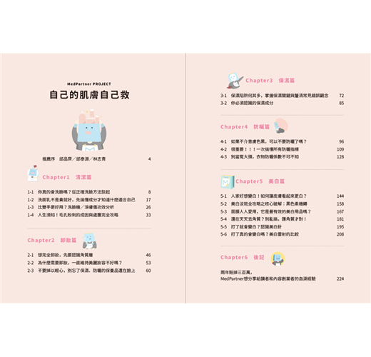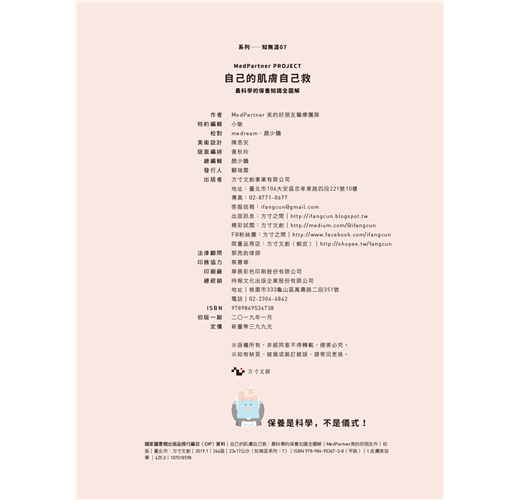 本系列作品《自己的肌膚自己救:最科學的保養知識全圖解》、《自己的肌膚自己救.實戰篇:拆穿商業話術,最誠實的保養品選用原則大公開》乃精選與肌膚保養相關的文章,從科學實證的角度,配合多幅圖解,告訴人們肌膚的「真正樣貌」與「正確保養方式」;同時MedPartner更勇於揭露拆解市面上不肖的商業花招,毫不迴避,實話實說,一般坊間同類型的書根本無法與之相提並論。