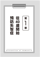 第一次閱讀失智症書籍的讀者們,如果可以從第6章開始閱讀的話,我想會比較好理解。假如想要更進一步學習失智症這種病症的人,請您務必參考看看敝人所著的《從大腦來看失智症》(暫譯,原文書名:脳からみた認知症)及《從社會腦來看失智症》(暫譯,原文書名:社会脳からみた認知症)(兩本都是講談社blue backs系列叢書)這兩本書。在前面這兩本書中,詳細地解說了失智症的病狀、診斷以及治療方法等。而本書則是依據前面兩本書的內容,並針對「從40開始的失智症預防方式」做系統性的整理。