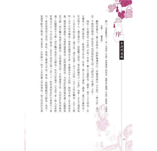 小說不同於哲學,小說的偉大不需要說明,只能用情節、故事來感染。因此閱讀小說與學習哲學、科技知識完全不同。經典的小說未必適合每一個人,一本好的小說,也未必需要完全通讀。興趣永遠是第一位。《水滸傳》這樣的經典也同樣,只要心某處被突然打動,必然會主動細細閱讀全文。現代的讀者全然可以漫不經心地翻看經典,無論原文、評論或者插圖,先從自己感興趣、吸引自己的地方入手。所以一部收集所有經典評論、適當注釋並且總攬所有插圖、繁衍作品的典藏版本,自然是最佳的選擇。