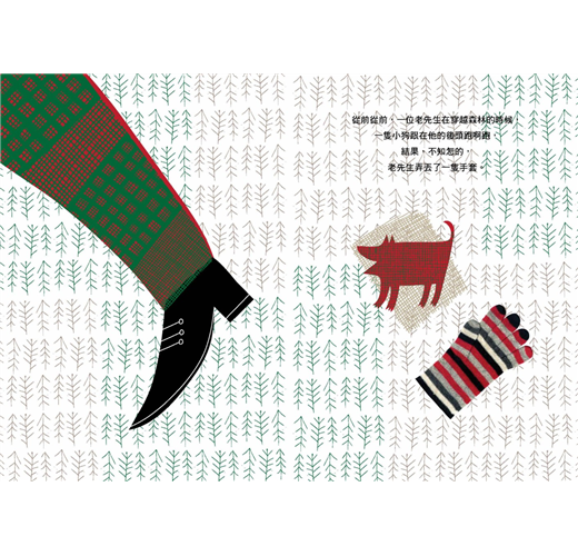 從前從前,有一位老先生在穿越森林的時候,後面跟了一隻小狗,老先生不知怎的掉了一隻手套。