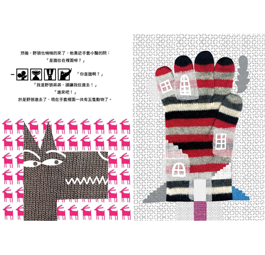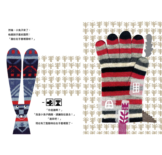 ★運用透視圖設計,可以清楚看到各種動物在手套裡快樂生活的情境。