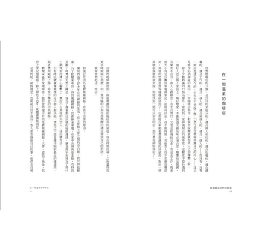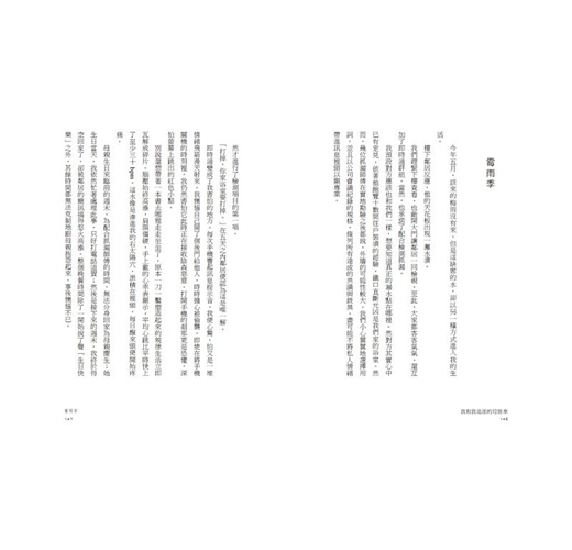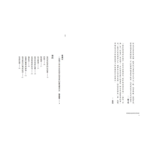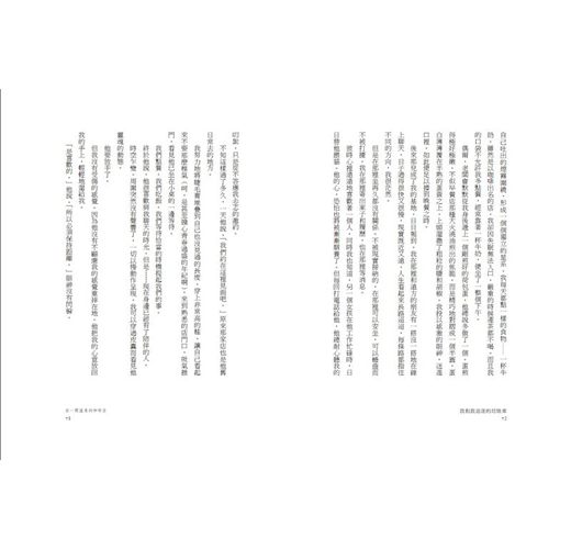 看她寫畢業後在台北,進入廣告行業,從小文案做起。看她為了省錢不租房子,借住父親的醫生朋友家、診所的病房裡。看她經常得加班晚歸,時間和金錢一樣拮据,趕上垃圾車、倒垃圾成了一種盼望。看她仔細端詳父親、母親、祖母、外婆,同事、戀人、同行的旅伴,每一個人。看她與這些人這些物長年長時間的接軌,從苗栗新竹到台北上海杭州,從小文案到廣告公司的副創意總監到這本書的作者。
