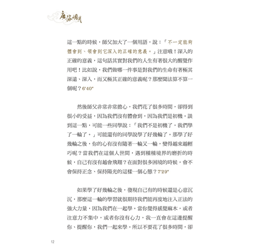 《廣論》就像是一本心靈成長最佳的教科書,而《廣海明月》正是它最佳的導讀。希望藉由本書的問世,你我能感受到,古賢今聖,也許是同一個心跳;天海之遙,也許就近在咫尺。