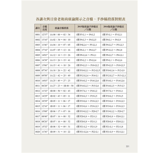 附錄:各講次與日常老和尚廣論開示之音檔、手抄稿段落對照表