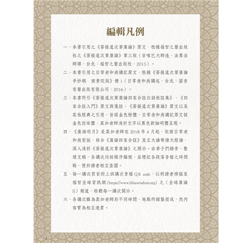 2、學習《菩提道次第廣論》的重要輔助教材,扣緊道次第的根本講述,令修學者最快速、最省力達到目標。
