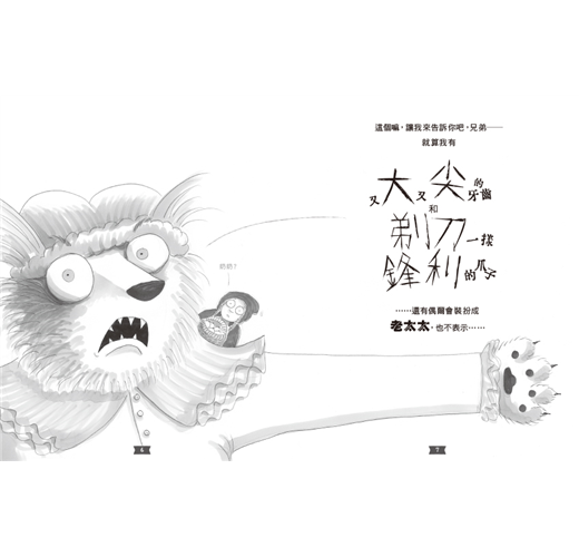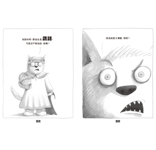 大家對我們的誤會太深啦,我們並不像你們想得那麼壞!大野狼吃奶奶什麼的,這個嘛,讓我來告訴你吧,兄弟──就算我有又大又尖的牙齒還有跟剃刀一樣鋒利的爪子……