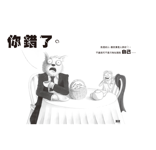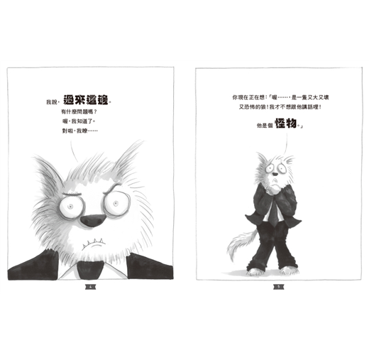 對,就是你。你現在正在想「噢……,是一隻又大又壞又恐怖的狼!我才不想跟他講話哩!他是個怪物。」是嗎?!