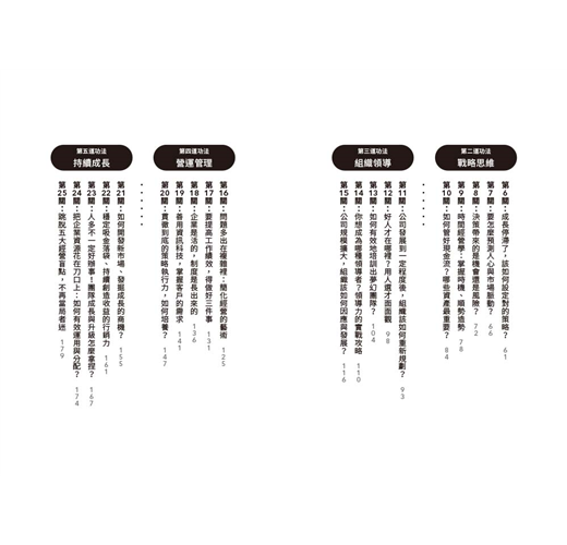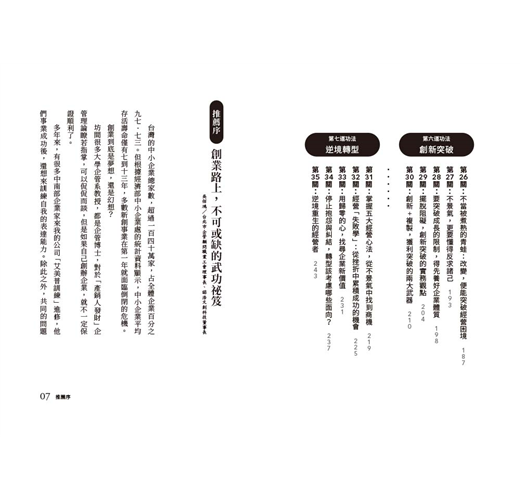 這套系統方法,共分七道修煉功法,分為35道關卡,從創業期要跨入成長期,經營者需要掌握第一至第四道功法,順利的話請跳到第五道功法,倘若不順利,請研讀第六道至第七道功法:
