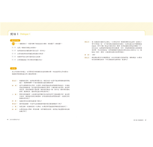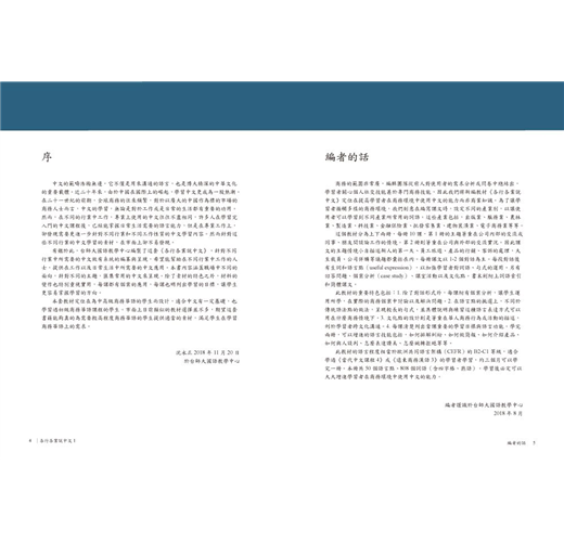 有鑑於此,台師大國語教學中心編製了這套《各行各業說中文》,針對不同行業中所需要的中文做有系統的編纂與呈現,希望能幫助在不同行業中工作的人士,提供在工作以及日常生活中所需要的中文應用。本書內容涵蓋職場中不同的面向,針對不同的主題,匯集常用的中文來呈現。除了素材的特色之外,材料的變作也特別重視實用,每課都有個案的應用,每課也明列出學習的目標,讓學生更容易掌握學習的方向。