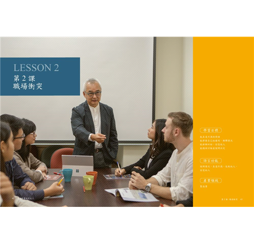 Volume One aims to strengthen workplace communication with colleagues and bosses; Volume Two focuses on handling external affairs. Series consists of a wide range of topics including first day of work, company trip, marketing, customer complaint, layoff and merger and acquisition, etc.