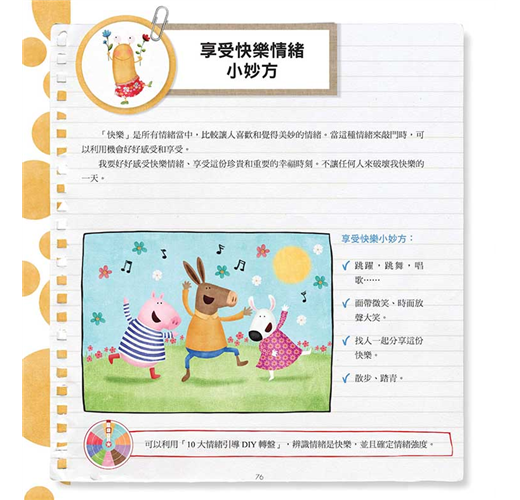 隨書附有【10大情緒引導DIY轉盤】讓家長在家也能運用簡單、清晰的情緒識別器材,讓孩子學會辨認自己的情緒狀況,進而理解如何排解、調節自我情緒。