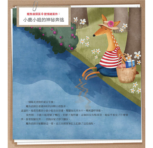 今天的森林村似乎不太平靜,又發生「情緒案件」了!原本開朗的咕咕雞夫人突然情緒低落,甚至完全不想出門!村裡的居民都好擔心咕咕雞夫人的狀況,決定找最知名的情緒專家──鱷魚偵探來幫助咕咕雞夫人,讓她找回平靜、快樂的心情。鱷魚偵探發現了什麼呢?咕咕雞夫人可以恢復原本開朗的心情嗎?