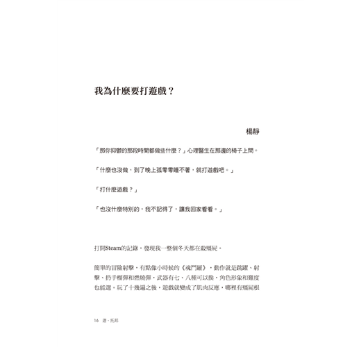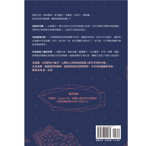 ★本書收錄端傳媒「Game ON」專欄16篇資深玩家體悟,寫盡遊戲的魅力與生命的互文!