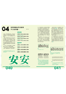 ▎特輯1──文字排印再入門 ▎近年在華文圈掀起了一股字型熱,也隨之有許多出版品及資訊唾手可得,但這片如同大海般的字型資訊海令人迷失方向。因此,本期字誌將幫你一次統整想踏入TYPOGRAPHY世界需要知道的所有知識,從文字的組成、風格、字型挑選、購買、辨認方法,再到實際的排版方法與注意事項,更請到四位活躍於台灣及日本字型設計業界的設計師,與各位分享他們是如何踏入這個行業、字型設計師的實際工作內容,並為所有想成為字型設計師的人提供建議。
