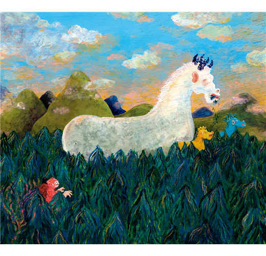 作者以豐富的想像力和令人驚嘆的圖像造型能力,描繪出山林奇幻經驗、一則與神秘的自然力量相遇的魔幻奇談,靈動而令人回味無窮,展現出野性大自然具有的非凡魅力。繪本中一再出現各式變形的圖像,增添閱讀時捉摸不定的讀圖樂趣,作者巧妙地將想像與現實融合嫁接在一起,滿足讀者從圖像建構的世界中去感受、發掘、理解原本未知的、神秘的、迷離的野生自然。讀者不妨試著進入角色,隨之展開沿路風景,想像在山林中尋找湖泊、樹洞、魚蟲、鳥獸、花香、奇岩、鷹準,甚至期待白馬的出現,進入萬物有靈的奇幻世界,就像是在夏夜聆聽爵士樂曲,在山林中搖擺靈魂和飄浮身體。
