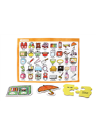 ●觀察:透過鮮豔的顏色,清楚的線條,讓孩子觀察、分辨各種不同的日常生活物品,找出正確的圖案配對。