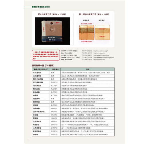 關於本書的色樣(黏土21種類×釉藥20種類×燒成3種類=1260種類)