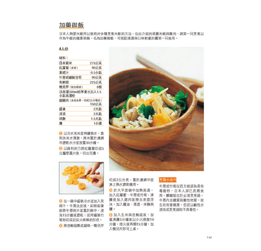 從主食、配菜到甜品,除了鉅細靡遺的步驟說明,還有每道料理的特色、適合食用的季節與節慶,以及特定食材的替代方案。