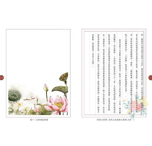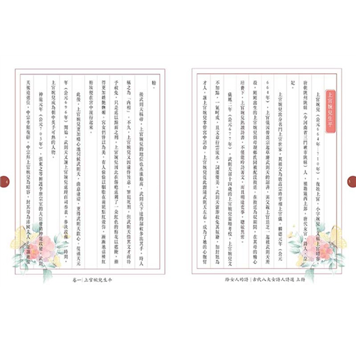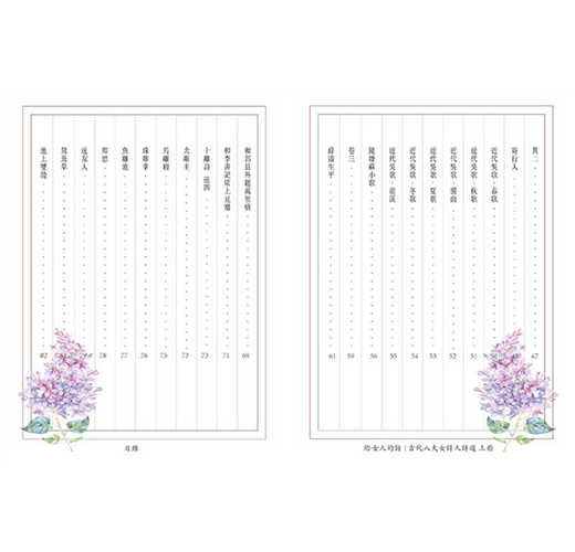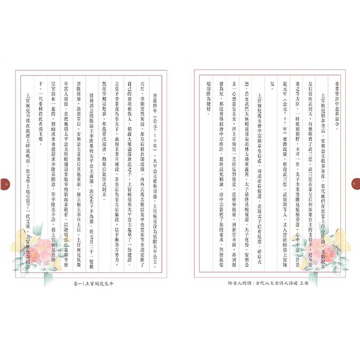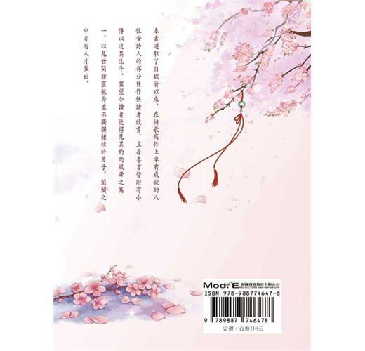 ——本書錄得魏晉以來在詩歌寫作上卓有成就的八位女詩人,之精選佳作供讀者欣賞,且每卷首皆附有小傳,以述其生平。