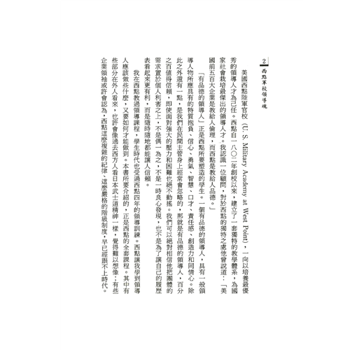 「優秀的領導人才必有崇高的品格。《西點軍校領導魂》對於領導與品格都有莫大的助益。」