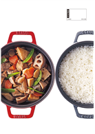 只利用食材本身的水分,STUAB鑄鐵鍋就可以無水烹飪,可以用較少的調味料和較短的加熱時間製作,因為鮮味被濃縮而不是煮沸蒸發掉,完成品也很漂亮!