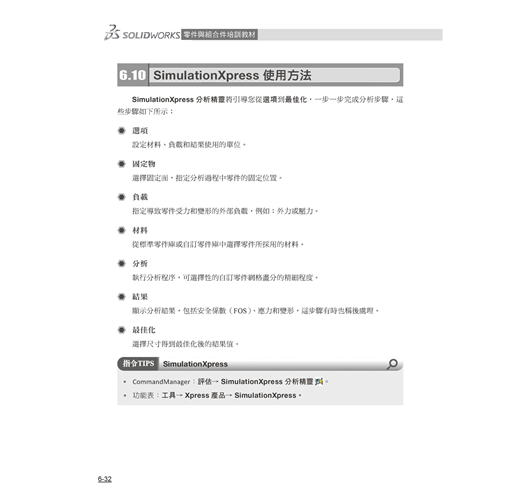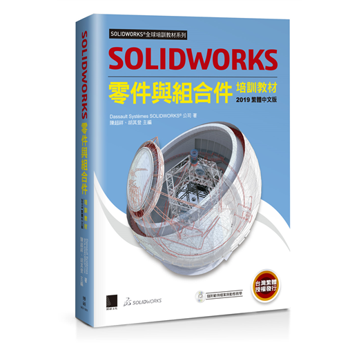 SOLIDWORKS零件與組合件培訓教材<2019繁體中文版>是依據DS SOLIDWORKS公司所出版的《SOLIDWORKS 2019:SOLIDWORKS Essentials》編譯而成的書籍,本書著重於介紹使用SOLIDWORKS軟體建立零件、組合件的基本方法和相關技術,以及產生工程圖的基礎知識。