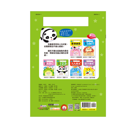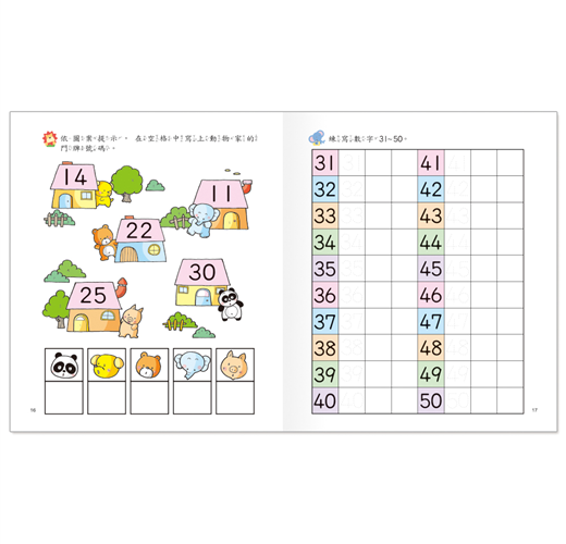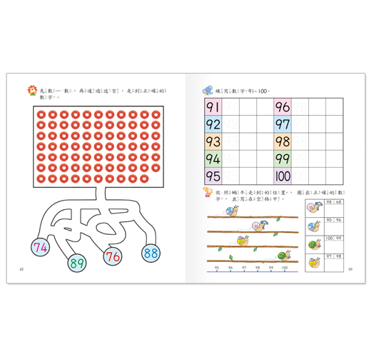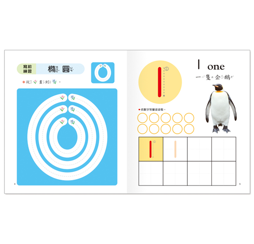 本書包括數學1-10的基礎筆畫練寫及11-100的綜合練寫。內容由淺而深,引導孩子認識數字1-100。此外,並有數字1-10的國字和英文,以及1-10的數量介紹等,讓孩子建立基礎的數概念。內頁採雙面上光,並隨書附贈白板筆,方便孩子擦寫,反覆練習。部分內頁圖片針對物品凹凸不同處上光,藉由特殊觸摸效果增強學習的樂趣。學齡前兒童的最佳自學書