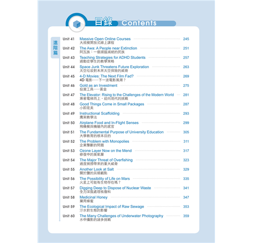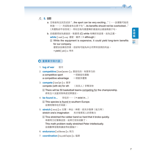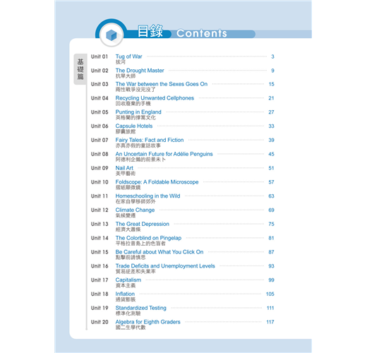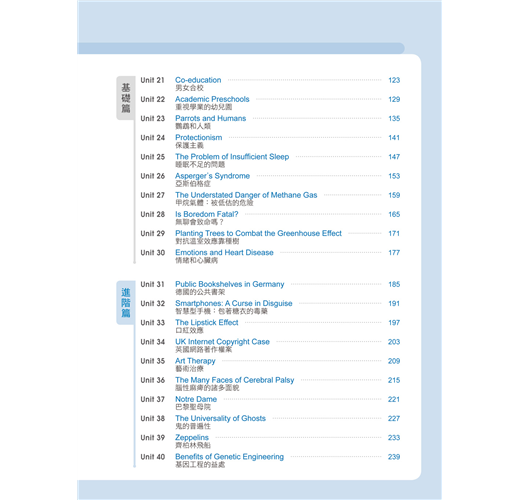 每篇文章不僅提供精確的翻譯,並對各類字彙及片語均舉例說明,適時補充相關用法,讓讀者充分理解文意發展,進而提高字彙及片語的運用能力。