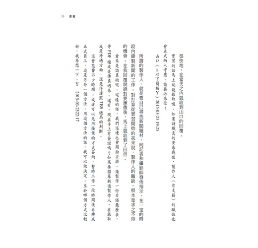 「社會部是追逐已經發生的事件,政治部要說的話,因為與世界連結,所以是持續積累的工作。雖然也是要看適性與否,不過我覺得妳的調性與社會部或政治部都吻合,加上妳又擅長面對人群,不是挺適合政治部的嗎?」山口這麼回答。