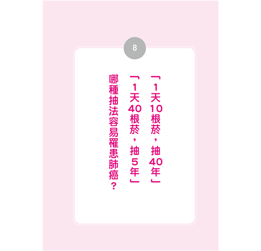 「 1天抽10根菸,抽40年」和「1天抽40根菸,抽5年」哪種抽法容易罹患肺癌?