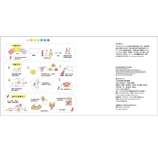 ★書末附有撕貼畫的玩法,準備好色紙和膠水,就能一起動手玩創作。
