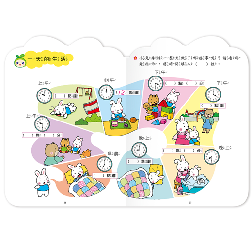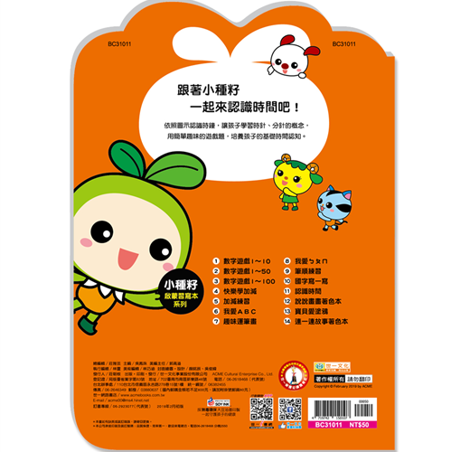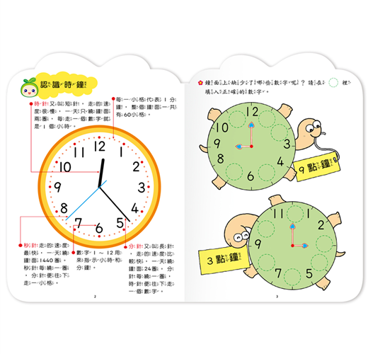「時間」對幼兒而言,是相當抽象的概念,不易了解,因此本書特別以幼兒熟悉的時鐘為輔助,循序漸進的介紹分、時等時間的單位,並與幼兒的生活作息結合,搭配可愛的圖案與有趣的評量,讓幼兒了解時間的存在及順序;而藉著日曆、月曆的示範與練習題,幫助幼兒了解時間的流逝,建立清楚的時間概念。循序漸進教導認識時間