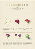 並附有食用花圖鑑,搭配花語、季節,自由揮灑出獨特且應景的花甜點吧!