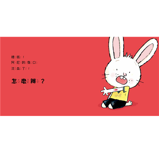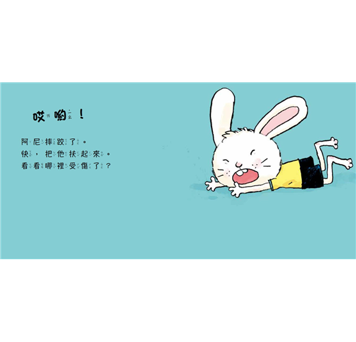 小兔子阿尼跌倒受傷了,痛得哇哇大哭。
